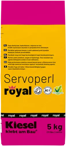 | Servoperl royal Mortier à joints semi-fin coloré, flexible, hydrofuge, haute résistance, et résistant à la saleté | 5 | 10 mm | X | X | X | X | (X) | (X) | (X) |